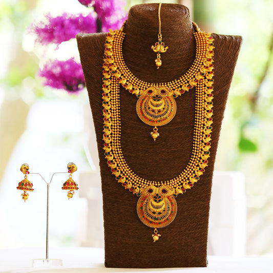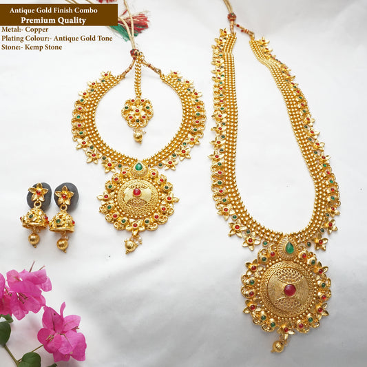 Beautiful Antique Gold Plated Wedding Necklace with Jhumki Earring Set